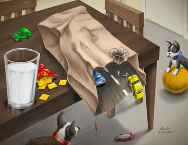 As a child, I was a voracious little artist with delusions of grandeur. I began drawing pictures and later comic books of Space Dog around the time I saw Star Wars in the summer of 1977. Five years later, I was a 1-boy comic book empire with several series and a raving audience of 1.